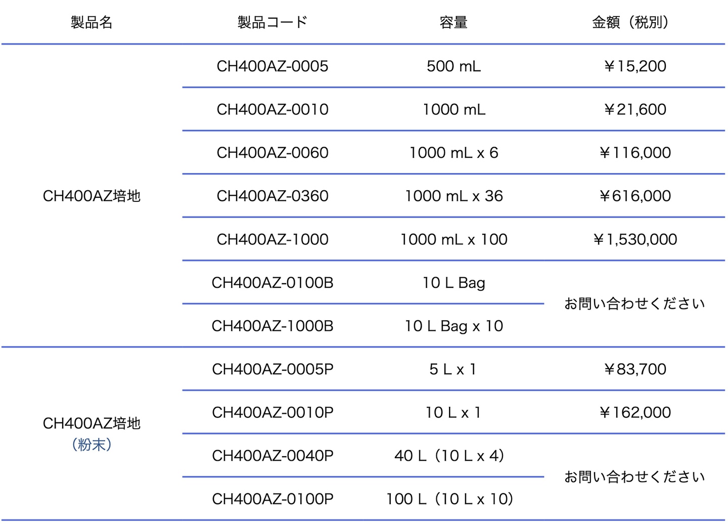 *CH400AZ培地は CH400培地にL-アラニル-L-グルタミンを加えたReady-to-use培地です。