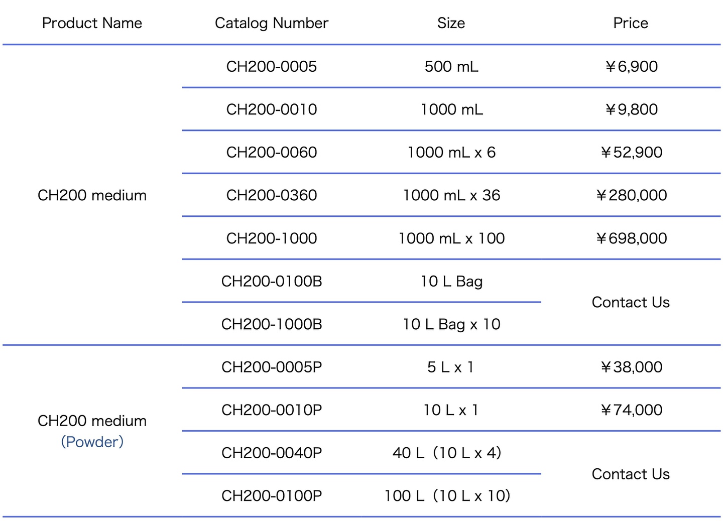 CH200 medium leads to the high performance similar to Thermo CD OptiCHO medium in cell growth for CHO-S cells.