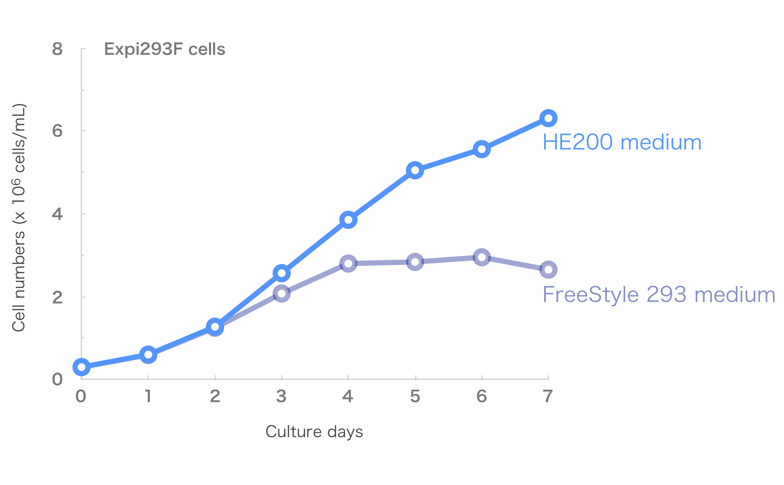 HE200 medium leads to the high performance similar to Thermo FreeStyle 293 medium in cell growth for Expi293F cells.