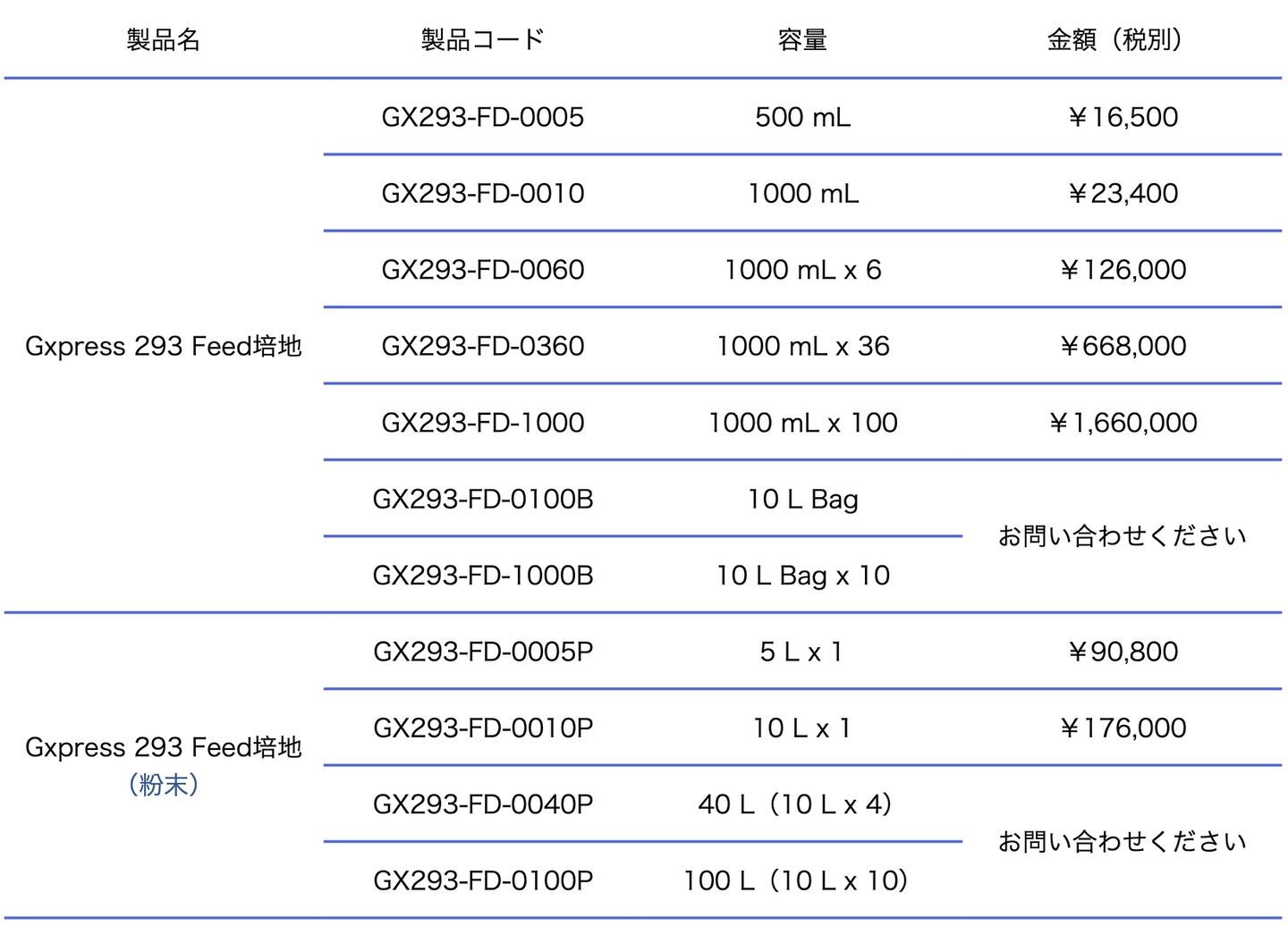 Gxpress 293 Feed培地は、ヒト由来 HEK293細胞(例;Expi293F細胞、293-F細胞、HEK293細胞、293T細胞、VPC細胞等)のフェドバッチ/パーフュージョン培養(発現&生産)のためにデザインされた、化学的に成分が明らかなフィード培地(完全合成培地/無血清培地)です。