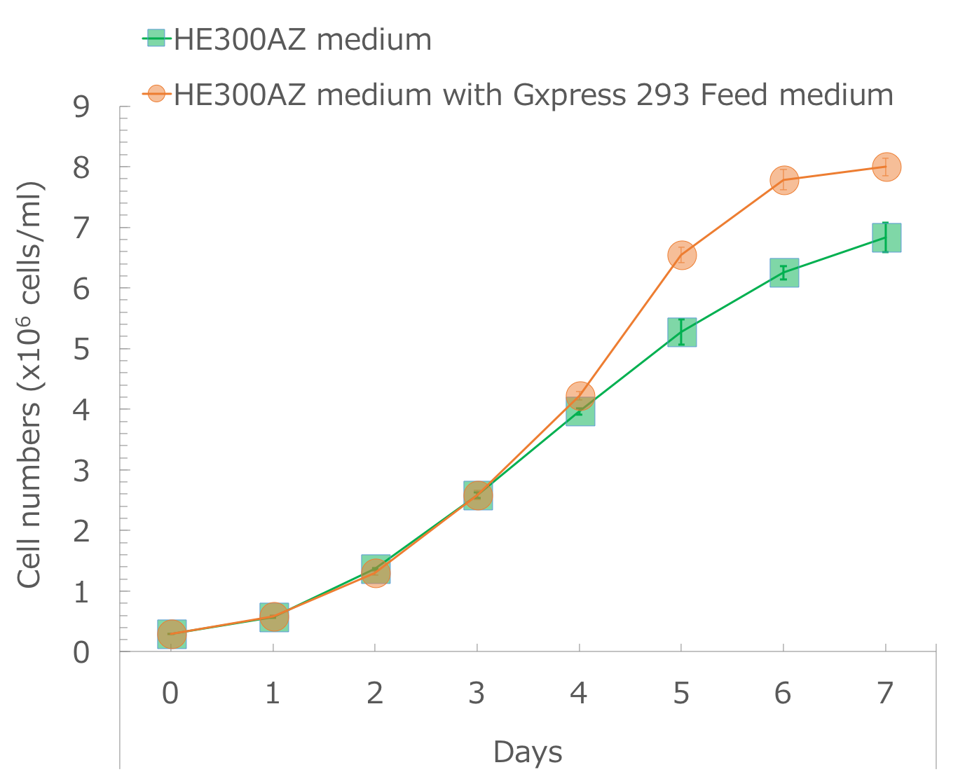 Fig. 1) Growth rate of Expi293F cells in HE300AZ medium with Gxpress 293 Feed medium.