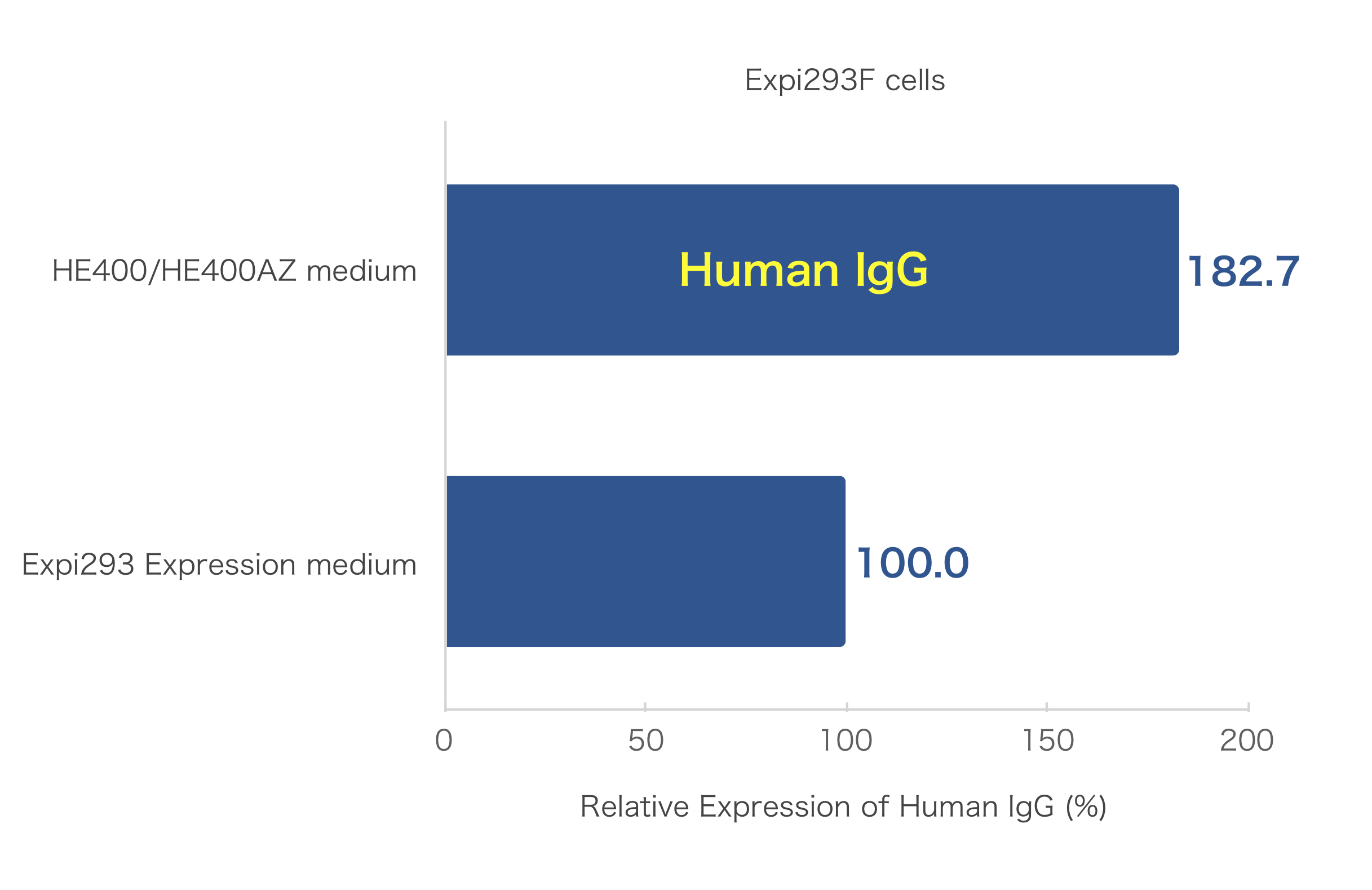 HE400/HE400AZ培地は、Thermo社 Expi293 Expression 培地と同様に、優れたパフォーマンスで、組換えタンパク質の生産を発揮できます。