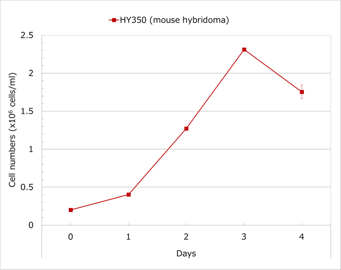 Fig. 7)Growth rate of mouse hybridomas in HY350 medium with L-glutamine.