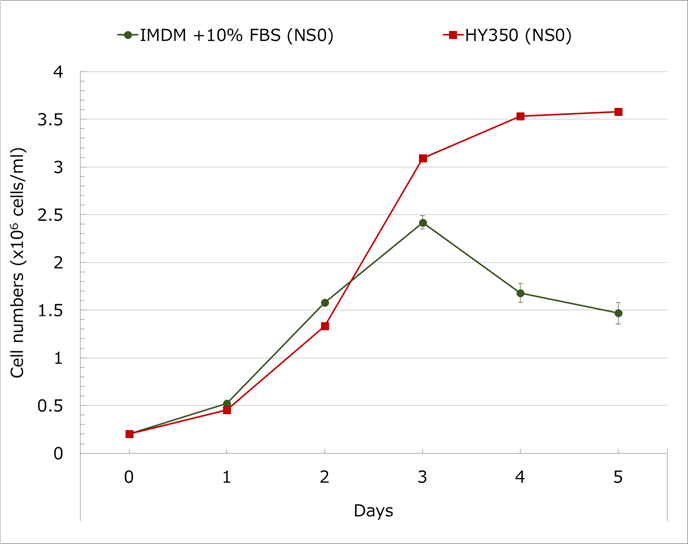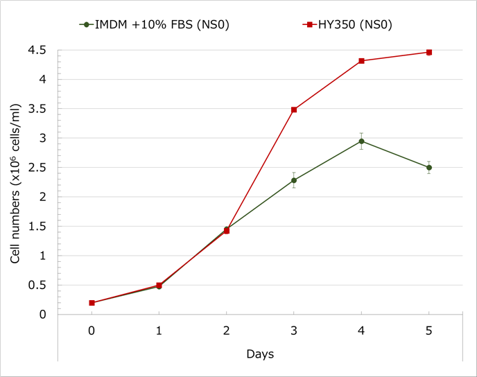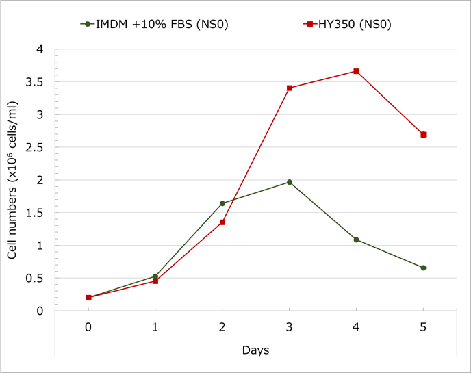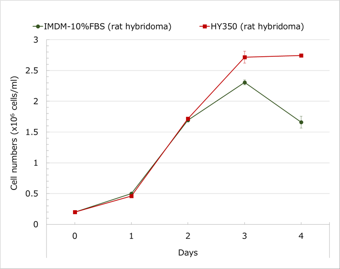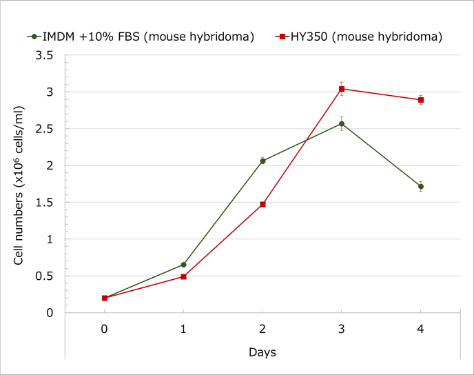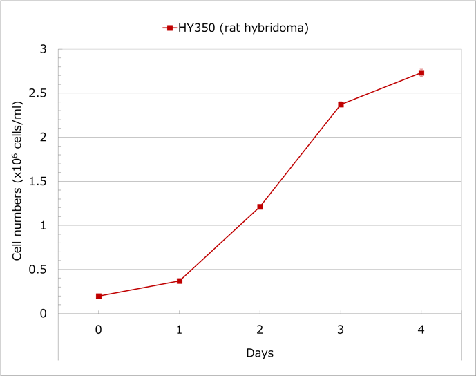 Fig. 3)Growth rate of mouse hybridomas in HY350 medium or commercial media.