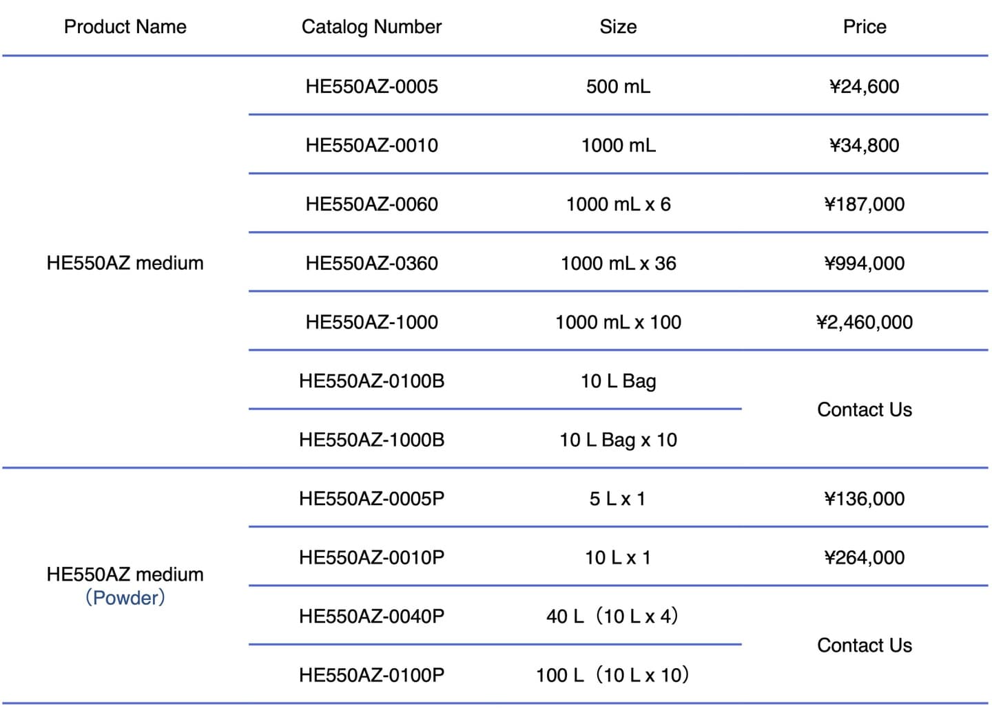 HE550AZ medium (CD medium), liquid or powder